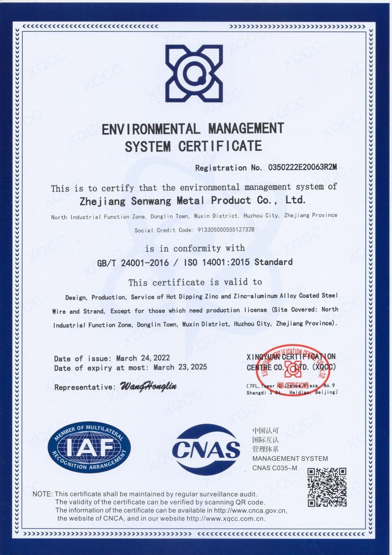 浙江森旺金屬制品有限公司成立于2012年,坐落湖州市吳興區(qū)東林鎮(zhèn)工業(yè)功能區(qū)。公司專業(yè)從事各類鍍鋅鋼絲、鋼絞線等產品的開發(fā)及生產。目前產品已廣泛應用于各類通信光電纜,電力輸送,電氣化鐵路工程,各類堤壩防護及農業(yè)溫室等工程領域。公司秉承“追求卓越品質,創(chuàng)建卓著信譽”的經營理念,始終堅持專業(yè)化、規(guī)模化的經營模式。
